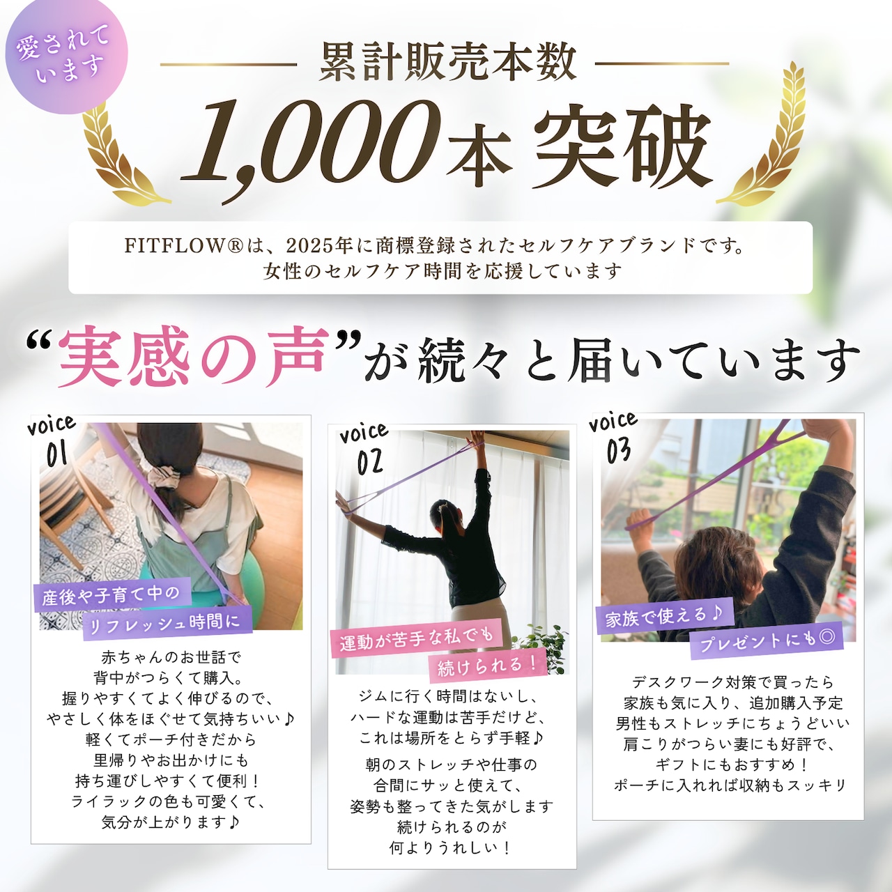 FITFLOW®︎くびれストレッチチューブは、忙しい毎日でも、美しいくびれ・美姿勢・肩甲骨ケアを叶えるセルフケアアイテムです。