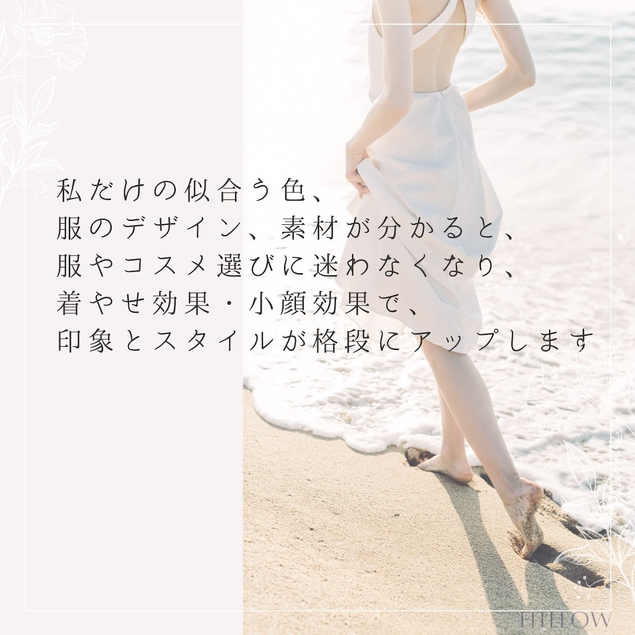 「似合う色」「骨格」「メイク」を知ることで、第一印象がアップし、自信を持って毎日を楽しめます。